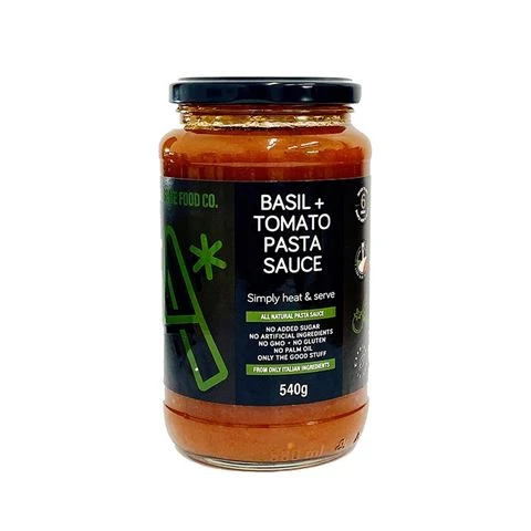 The Basil & Tomato pasta sauce is our classic, go-to sauce for pasta. Blend of 6 fresh ingredients makes tomato for punchy fresh flavour and complemented with Basil adding depth to this classic Italian sauce.