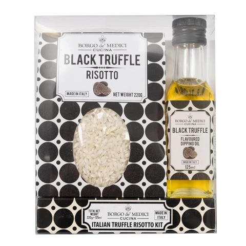 Borgo De Medici Black Truffle Risotto Set is the perfect way to experience gourmet luxury at home. Made in Italy from high quality ingredients. Delicious served on its own with the Borgo De Medici black truffleor garnished with shavings of fresh parmesan and a drizzle of truffle oil to finish.