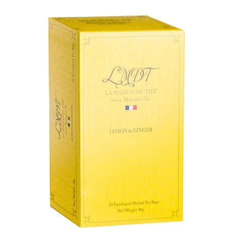 La Maison Du The’s Lemon & Ginger Enveloped Tea Bag Pack is a simple and easy way to enjoy artisan teas with minimal effort. Each pack includes twenty-four individual tea bags, while the beautiful, hand-torn tea leaves show through the nylon-enveloped tea bags. All enveloped bags are individually sealed in foil for preserving the high quality of the tea, ensuring that you’re left with a distinct and memorable drinking experience.