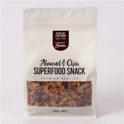 Santos Premium Quality Almond & Chia Superfood Snack are a tangy and nutritious taste sensation that will make your gatherings pop with their delectable combination of almonds, maple syrup and chia.