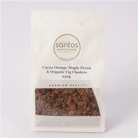 Santos Premium Quality Cacao Orange, Maple Pecan & Organic Fig Clusters are a rich and sweet taste sensation that will make your gatherings pop with their delectable combination of cacao orange, maple pecan and organic fig.
