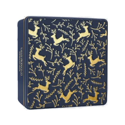 - Presented in a black and gold embossed Valley Produce reusable tin